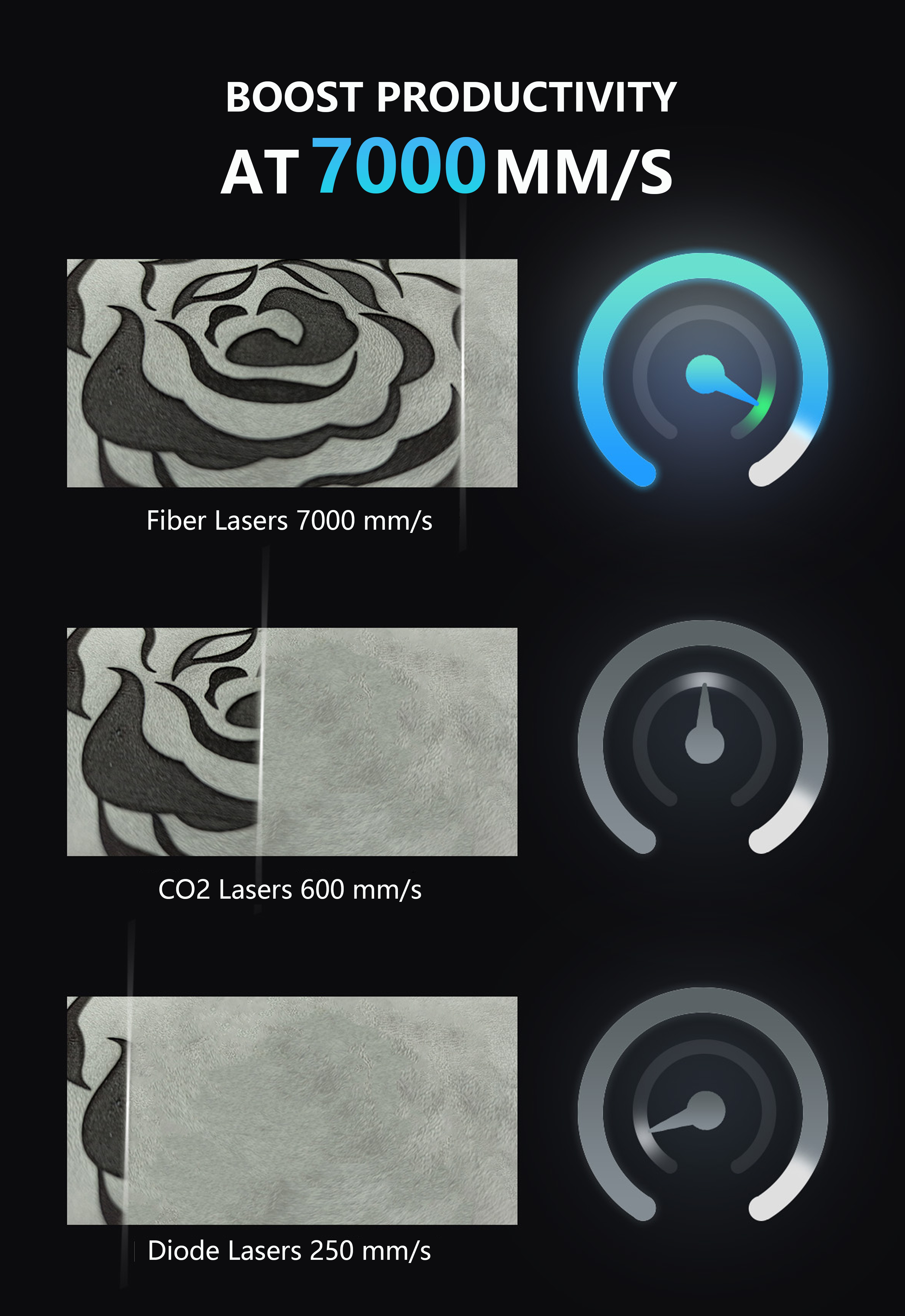 Two high speed motor controlreflect lens inside the head,which give the machine max7000mm/smarking speed.Supply different brand andmode, also could make the auto focus type, and the 3D type.